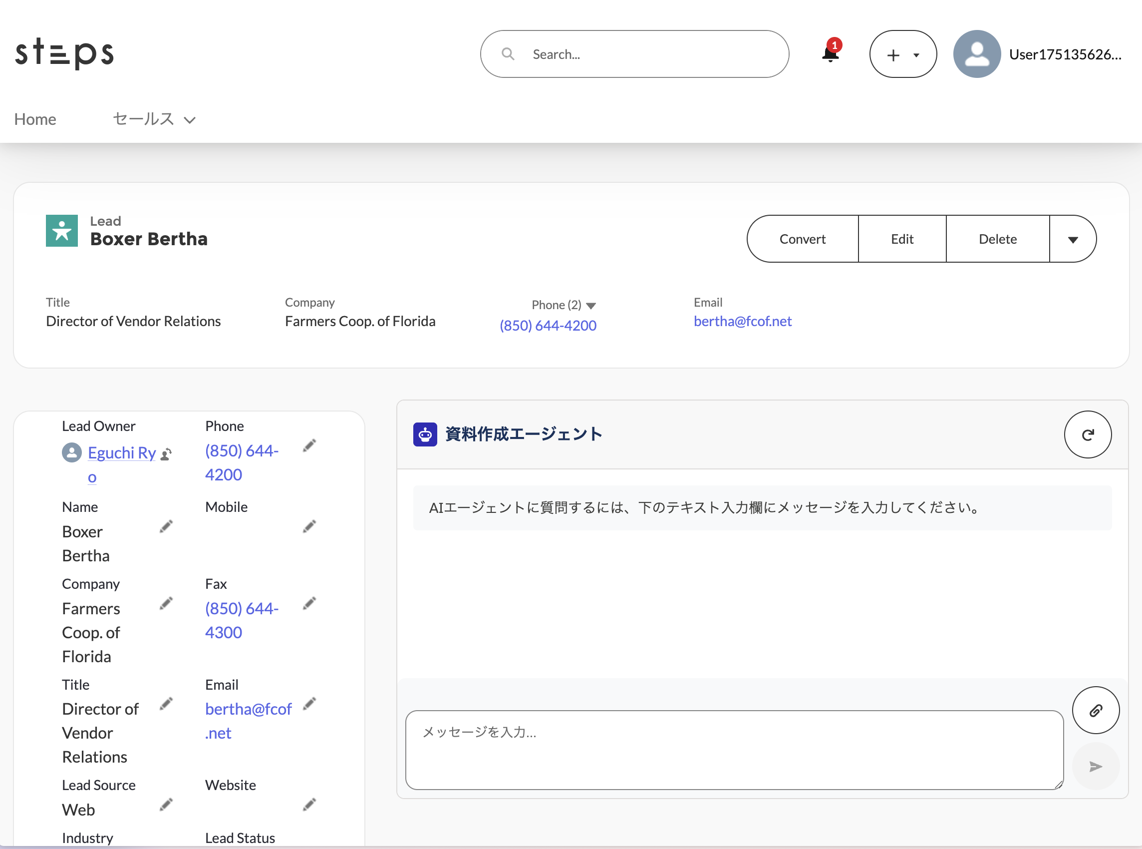- 空欄の場合は、そのユーザーが使用できるエージェントの一覧が表示され、クリックすると使用できます。