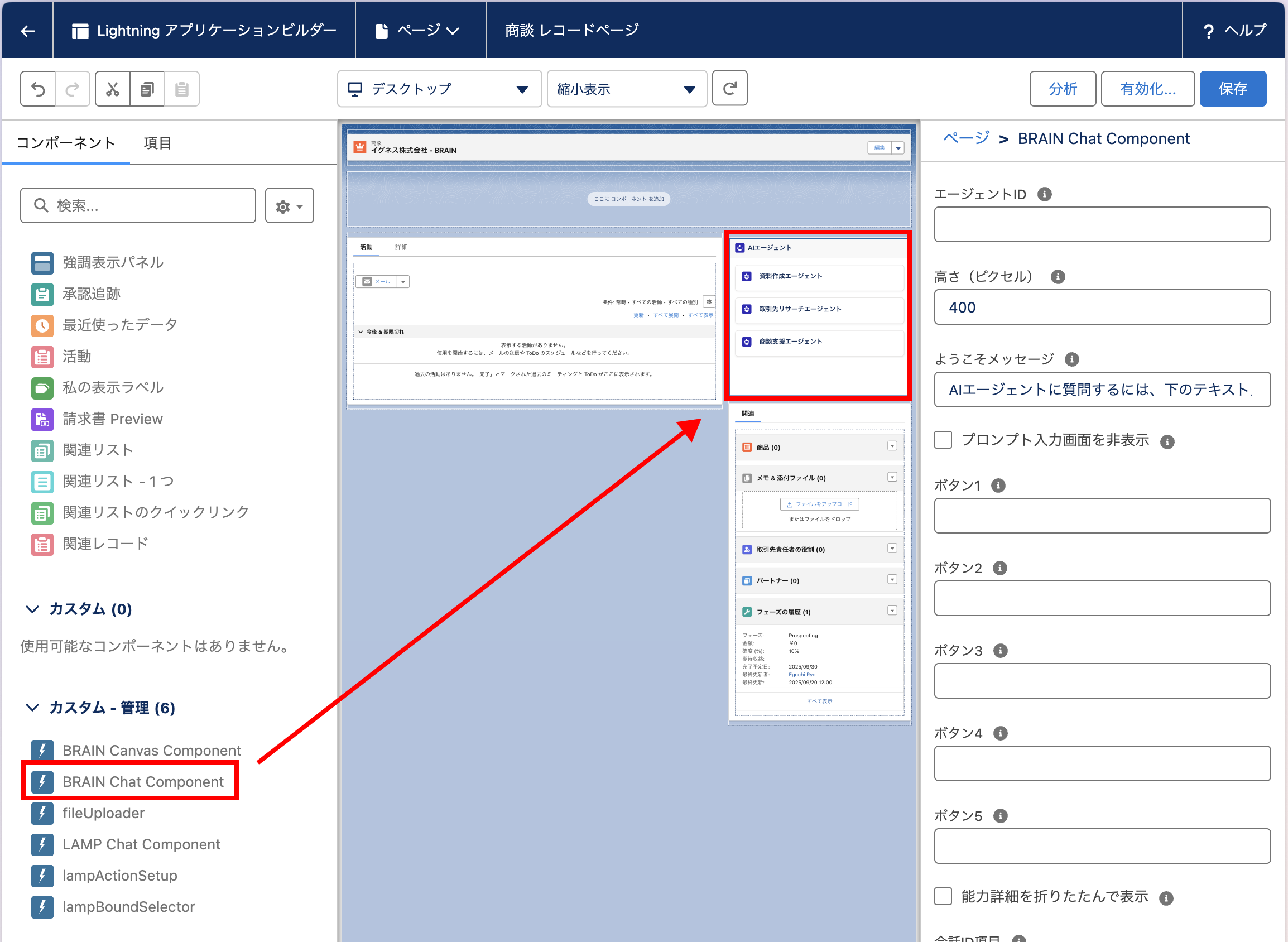 エージェントを作成したら、使用する場所にBRAINエージェントのコンポーネントを設置しましょう。
