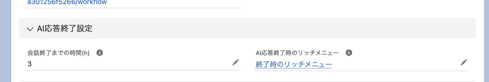 LAMPでは、最終メッセージの送信日時から一定時間が経過すると、AI会話が自動的に終了する設定が可能です。