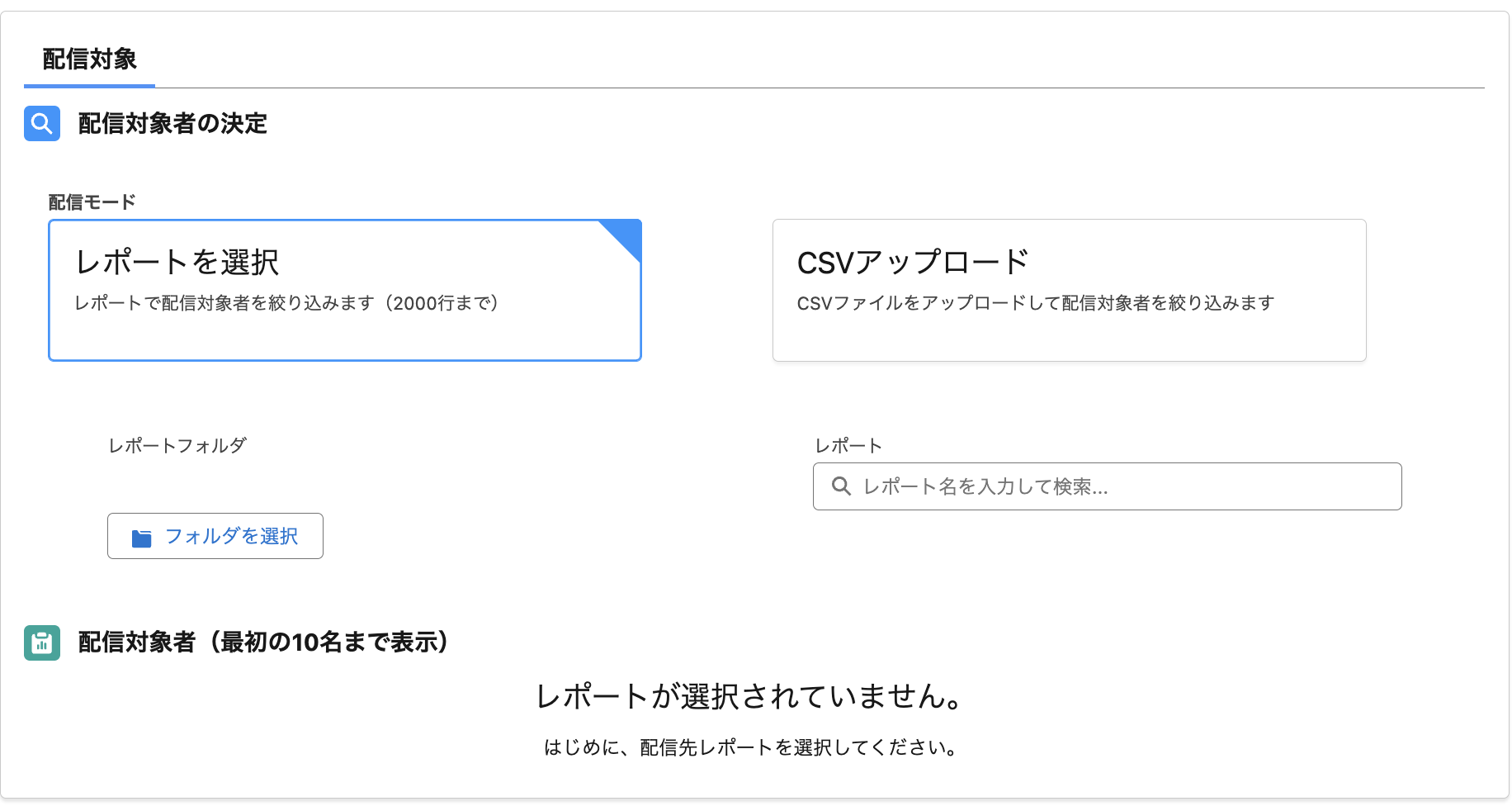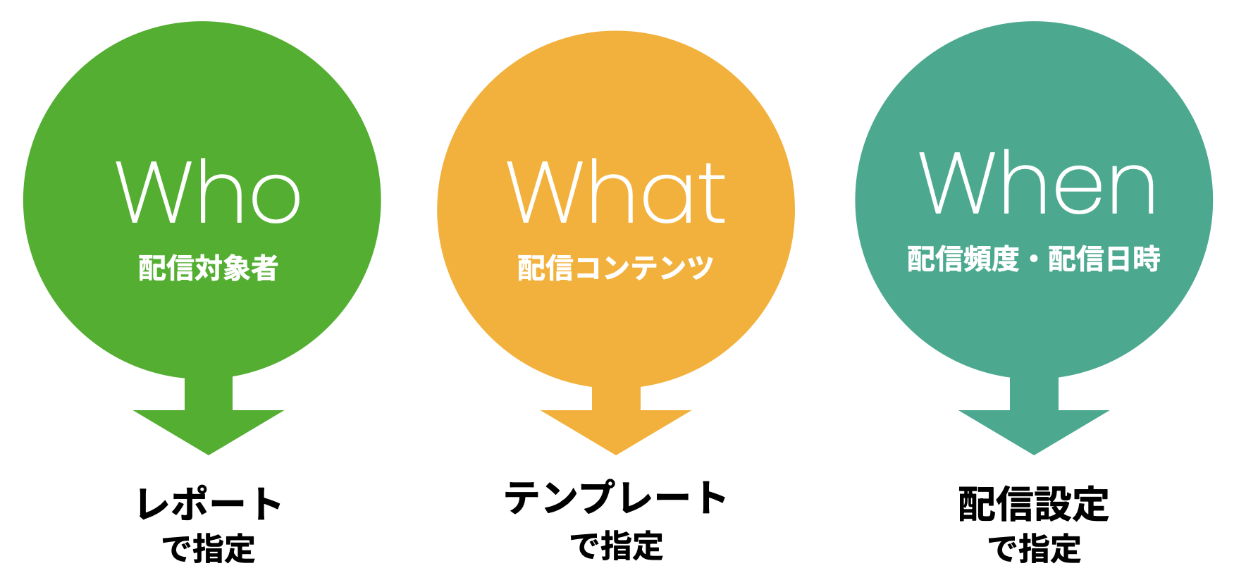 レポートの作成・およびテンプレートの作成が完了したら、配信設定を行います。