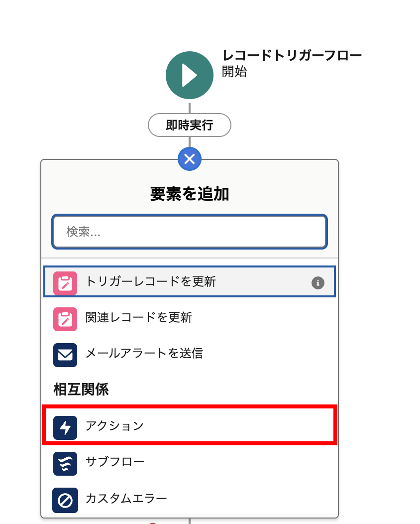 今回は、レコードトリガーフローを例に作成します。また、発火するレコードトリガーフローの条件などは設定していることを前提とします。