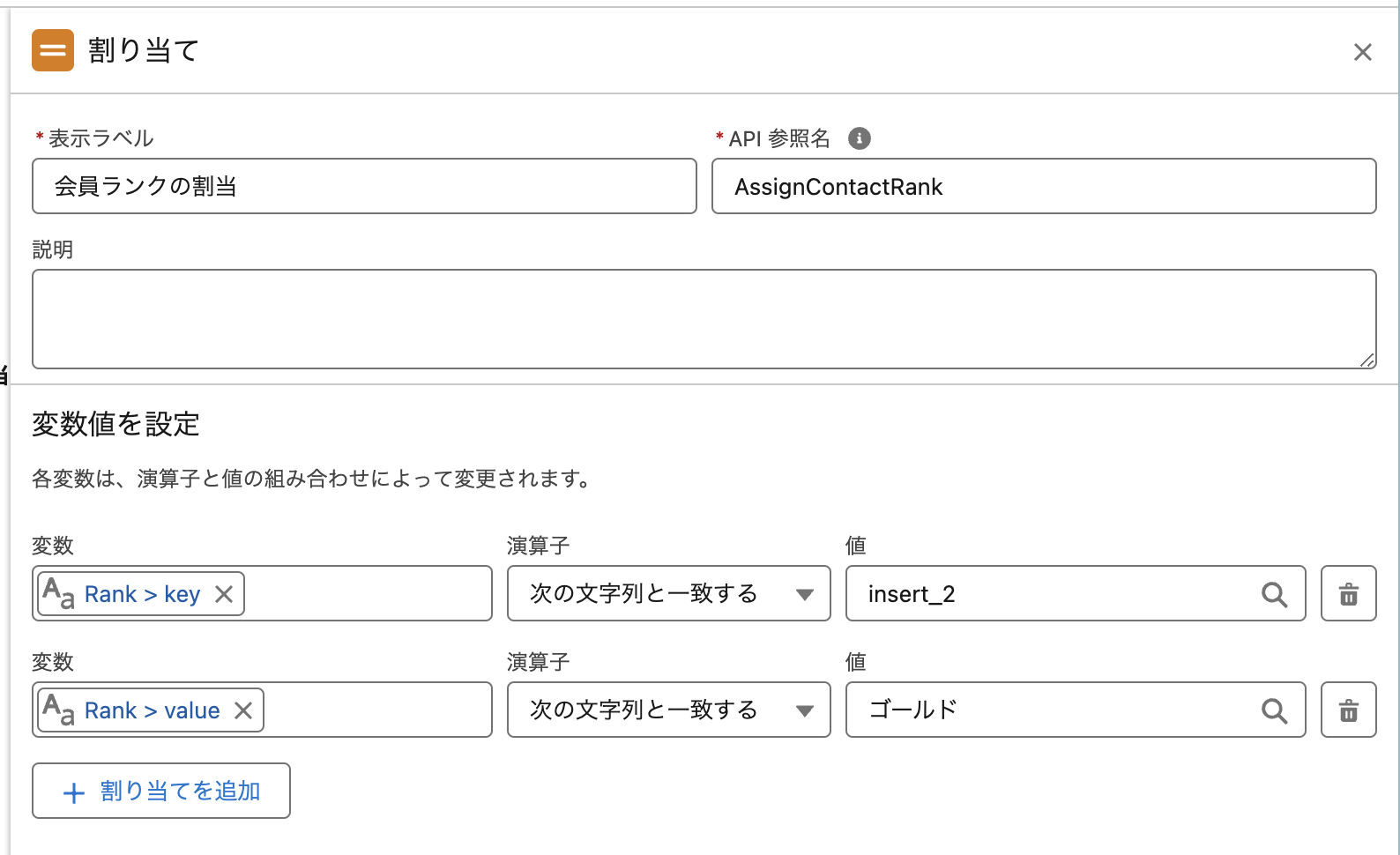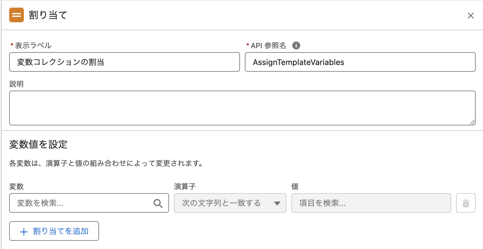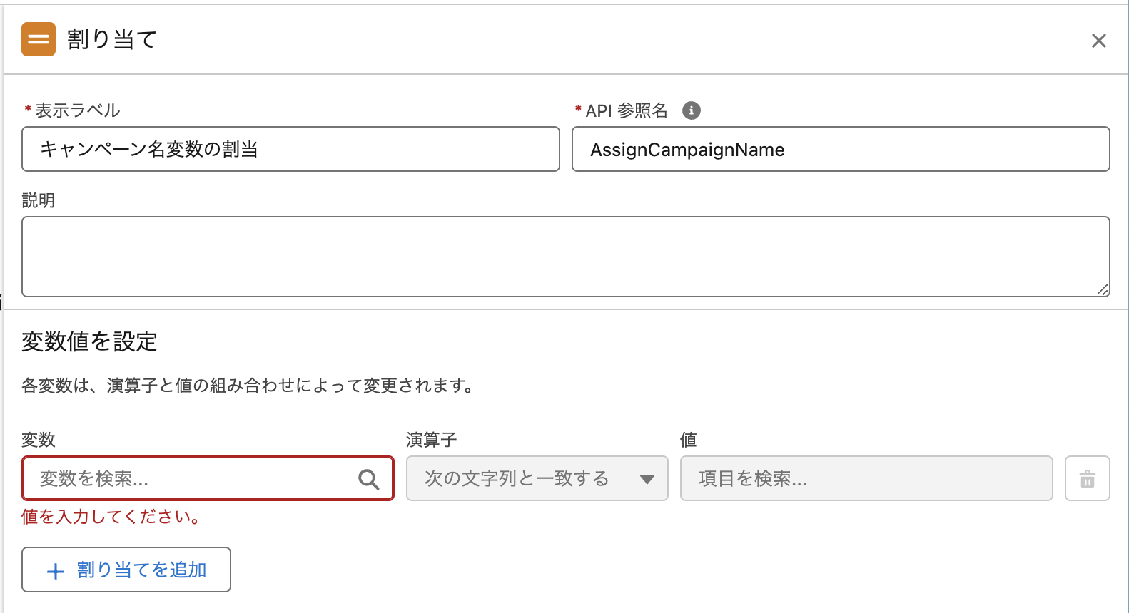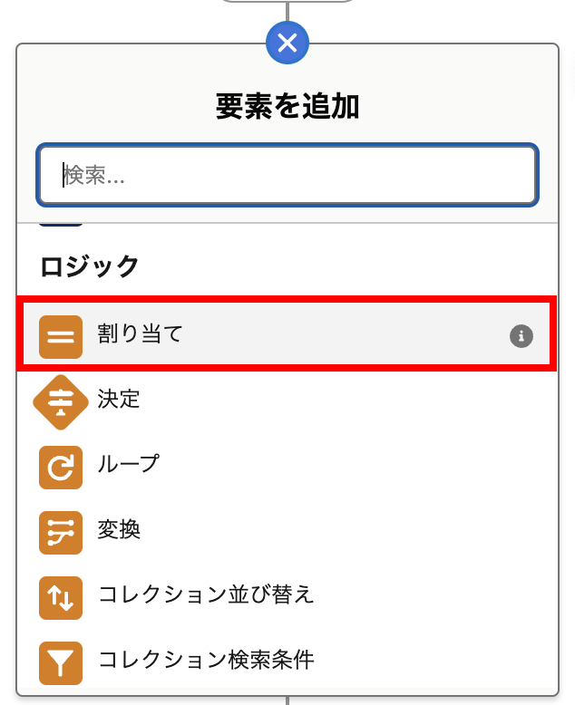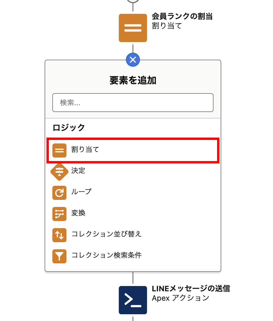 [要素の追加]より、「割り当て」をクリックして割り当て要素を追加します。