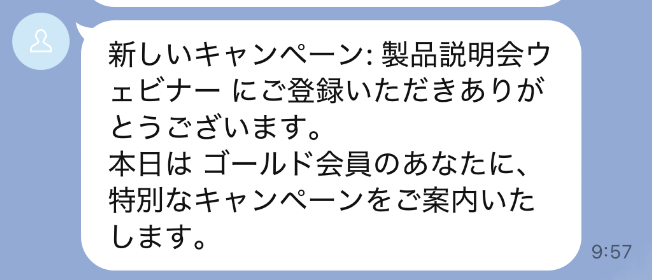 - キャンペーンに登録されているキャンペーンメンバーの状況が「送信」から「レスポンスあり」に変更されたときに、LINEメッセージを送信する