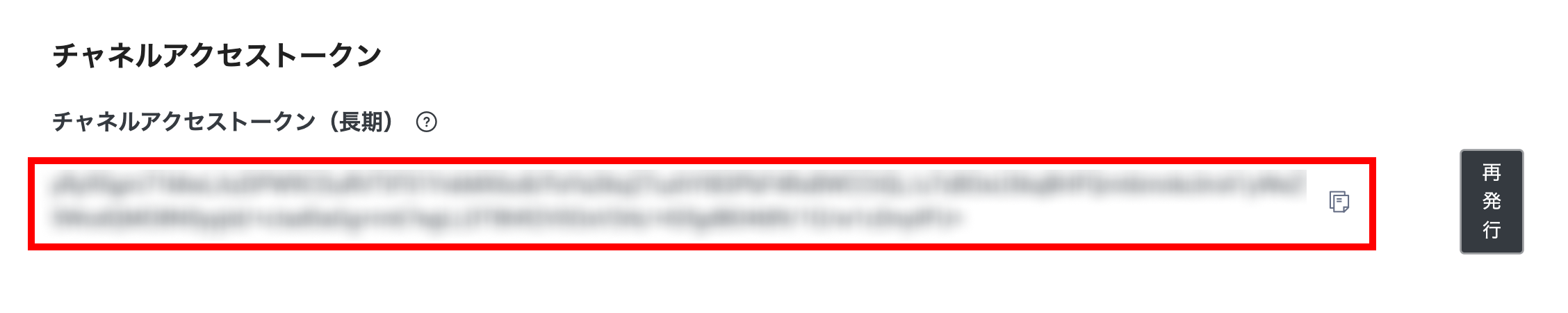 Messaging API設定のチャネルアクセストークン(長期)の下にある「発行」ボタンをクリックします。