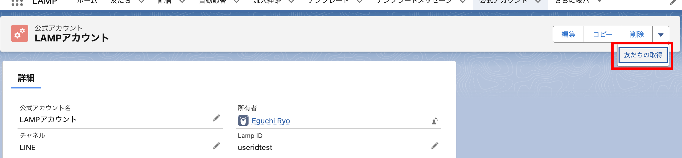 「友だちの取得」をクリックします。