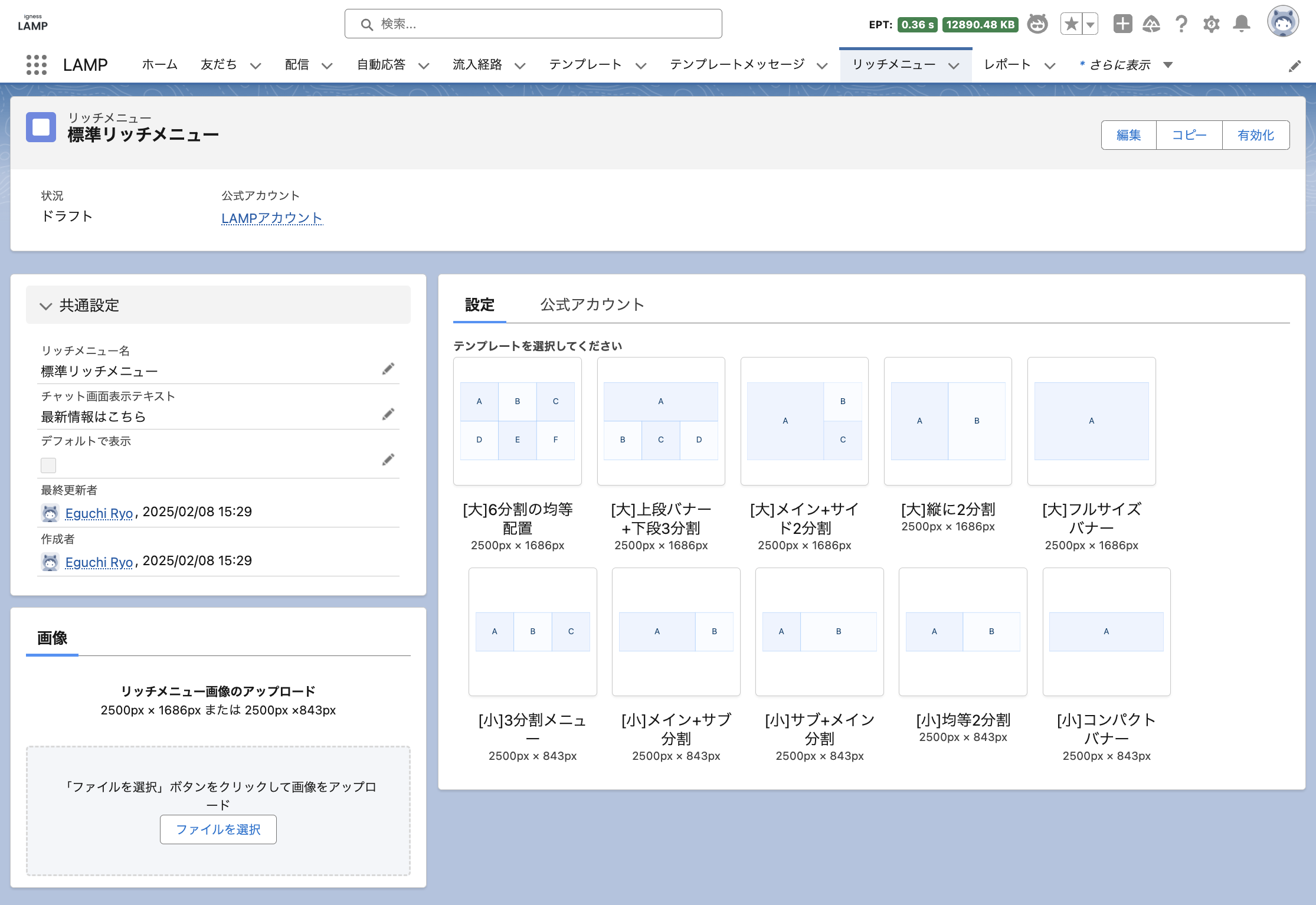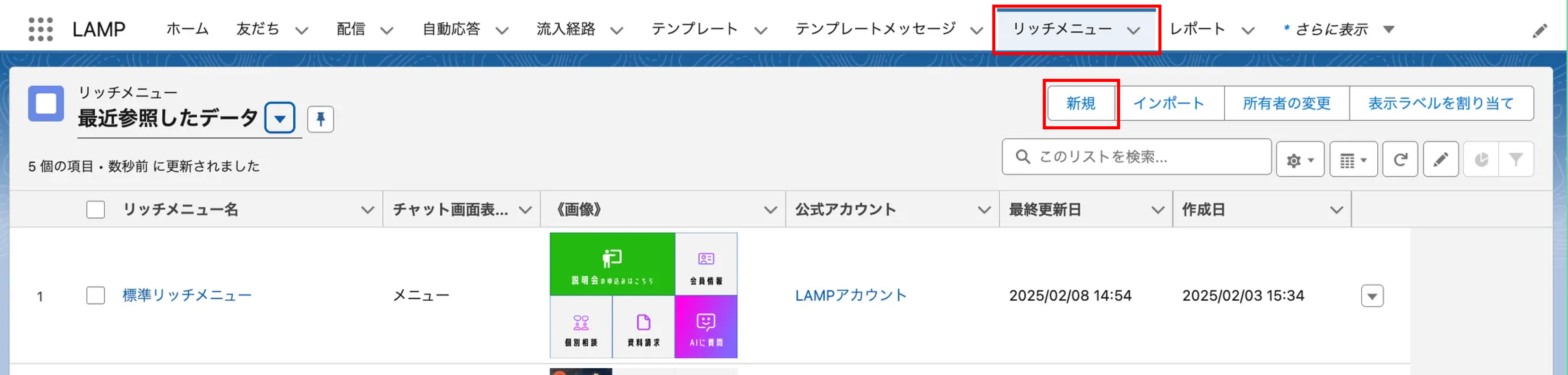 | リッチメニュー名 | Salesforce内で利用する名前です。お客様には表示されません。 |