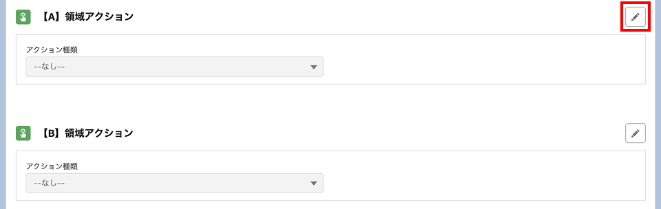 領域に対して、ユーザーがタップしたときのアクションを選択します。