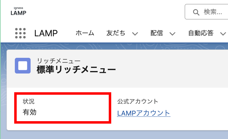 [有効化]ボタンをクリックしてリッチメニューを有効化します。
