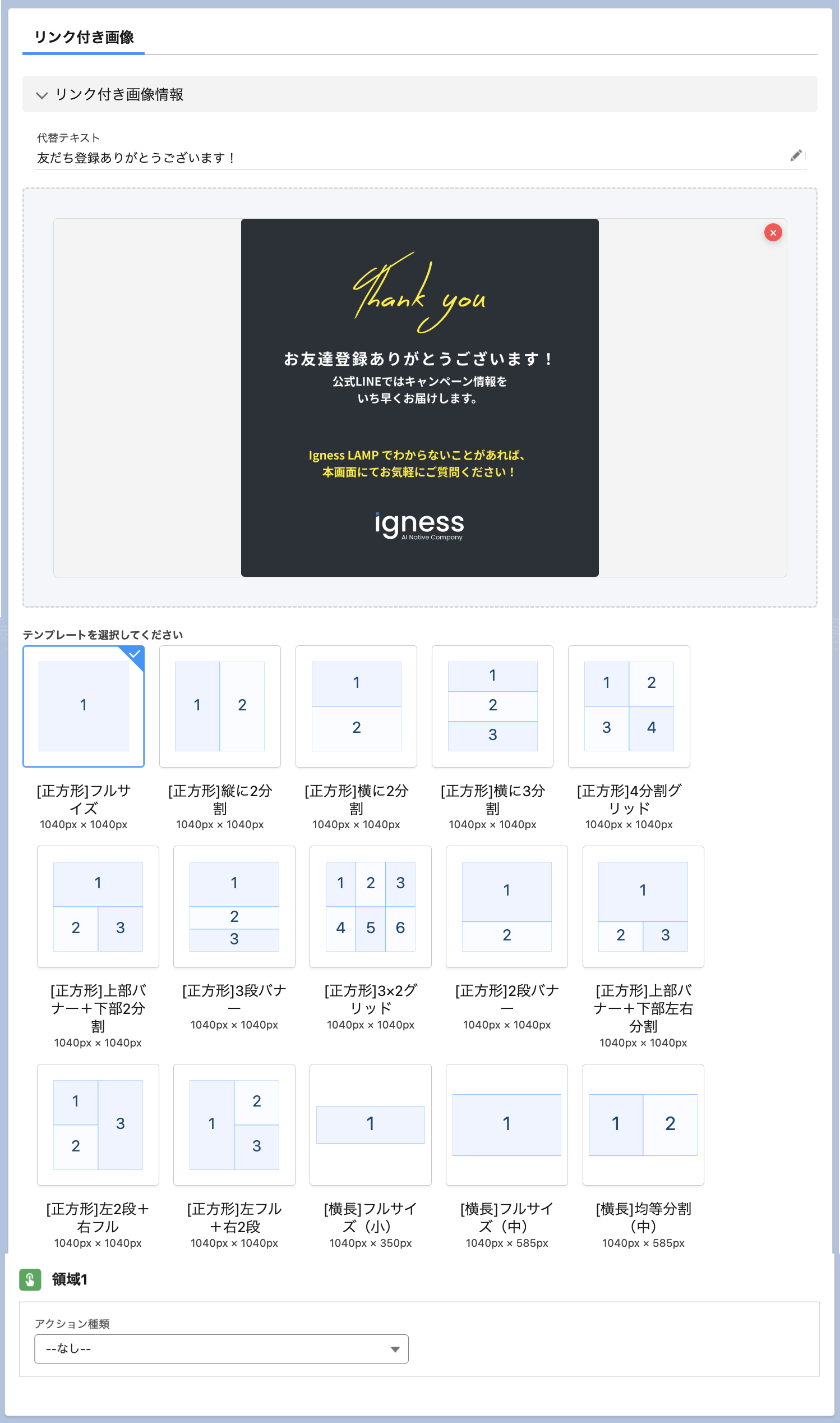 リンク付き画像メッセージでは、領域をタップするとアクションを設定することができます。