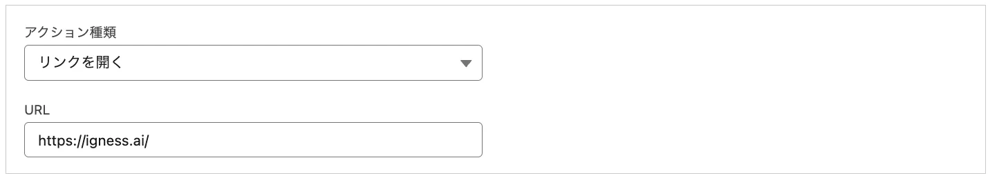 | アクション種類 | ユーザーがタップしたときの動作 |