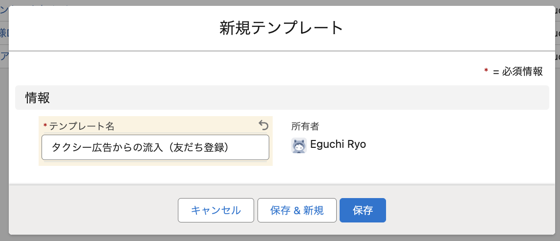 テンプレート名に、テンプレートの名前を入力します。
