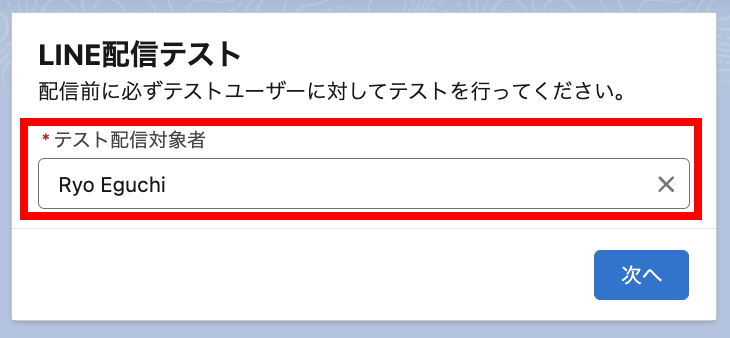 テスト配信対象者を選択して、[次へ]をクリックしてください。